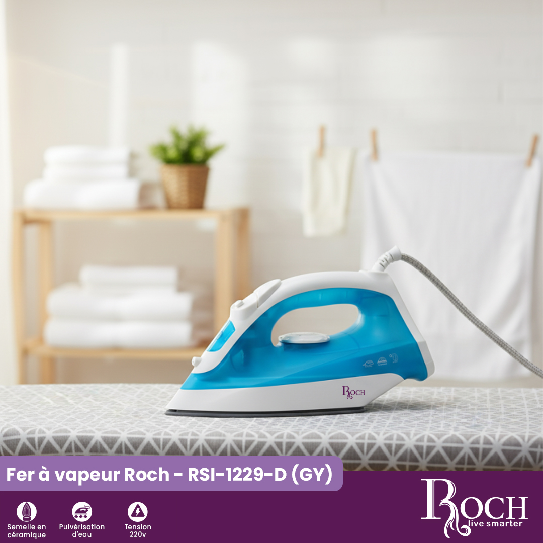 Fonctionnant sous une tension de 220V, le ROCH RSI-1229-D offre une performance fiable et constante à chaque utilisation. Compact, léger et ergonomique, il assure une prise en main confortable et un repassage sans fatigue.