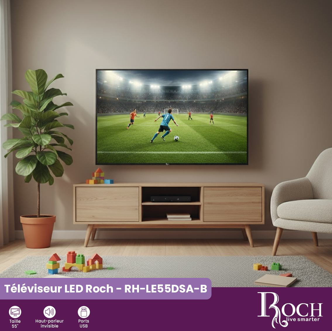Le ROCH RH-LE55DSA-B combine élégance, performance et efficacité énergétique pour répondre aux attentes des foyers modernes.